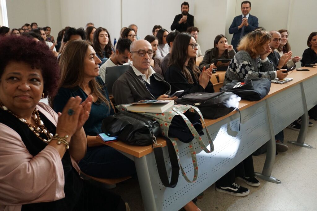 Dopo la presentazione di “Ainda Estou Aqui” al Galleria e l’incontro a Polignano a Mare dedicato a Eunice Facciolla Paiva, l’ultimo appuntamento del Bari Brasil Film Fest con Marcelo Rubens Paiva e le sorelle Vera Silvia – arrivata in Puglia con il marito George Avelino Fillho – e Ana Lùcia Facciolla Paiva è stato l’incontro con gli studenti del corso di Lingua e Traduzione di Lingua Portoghese dei professori Ugo Serani e Rui Costa, aperto anche al pubblico della nostra rassegna, che ha affollato la sala.