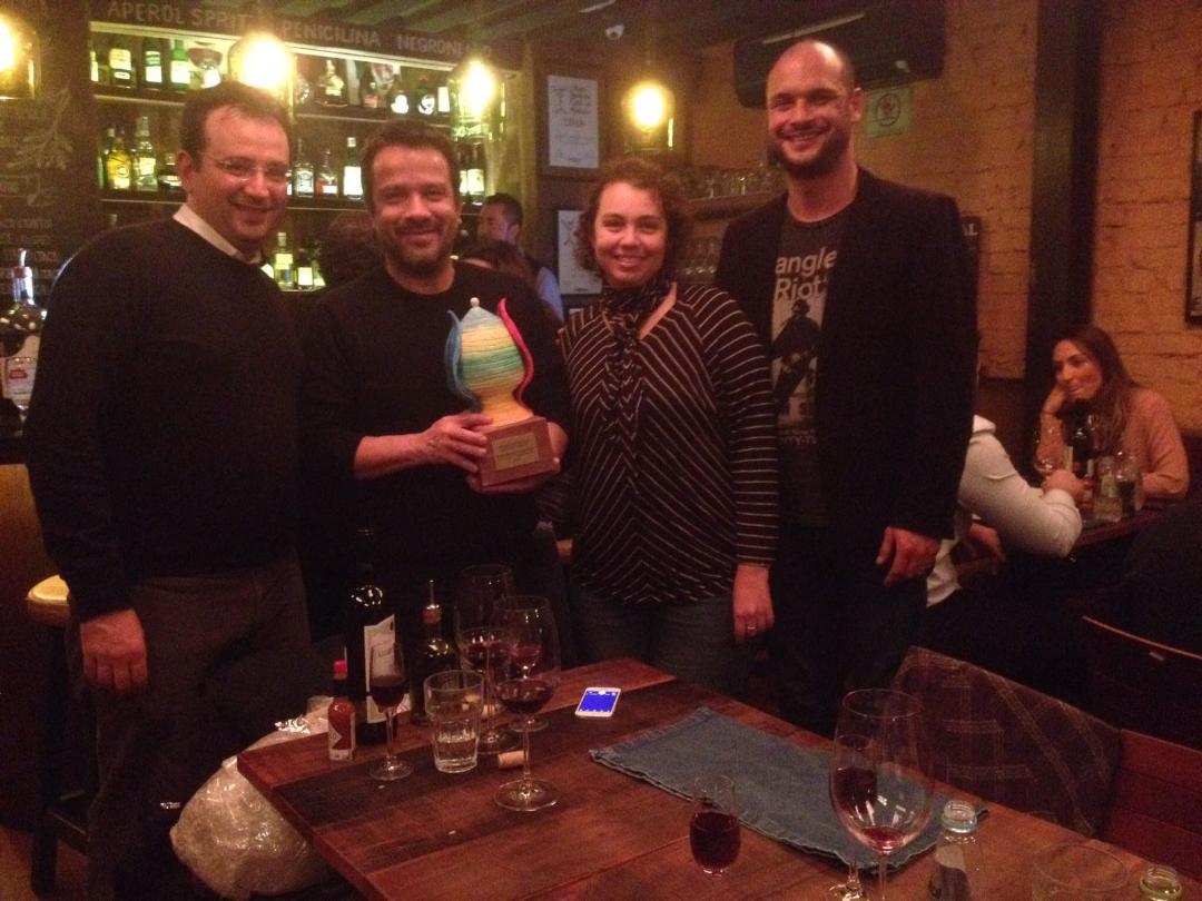 Durante un’allegra serata conviviale a San Paolo, Associazione Culturale Abaporu ha consegnato ad Hugo Prata il premio del pubblico dell’edizione 2017 del Bari Brasil Film Fest.